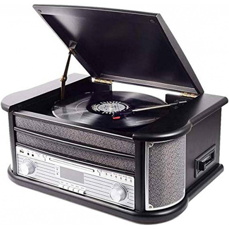 Tocadiscos: Puedes escuchar música de los años 50-60, pero con una tecnología mejorada. Es compatible con discos de tamaño 17,5/25/30 cm y puede reproducir a 3 velocidades: 33/45/78 rpm. Aguja de cerámica de diamante.